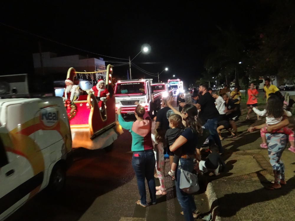 Durante os três dias o Papai e Mamãe Noel distribuíram balas durante os percursos das carreatas, levando alegria para a garotada e famílias que saíram às ruas para saudar o bom velhinho e admirar a beleza e encanto dos veículos decorados pelas empresas.