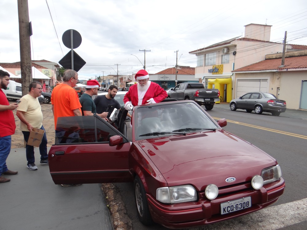 O empresário Reynaldo Soave Filho, mais conhecido como Branco, com seu Escort conversível, conduziu o Papai Noel para uma rápida carreata pela Avenida 9 de Julho e pelo centro da cidade.